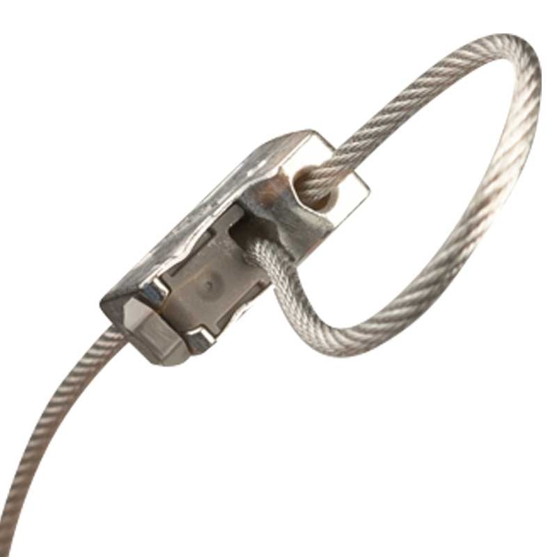Die Drahtklemme ist an beiden Seiten mit einem Schieber ausgestattet, mit dem das Stahlkabel entriegelt werden kann. So hilft dieses Paket, Objekte schnell und einfach in der Höhe aufzuhängen.