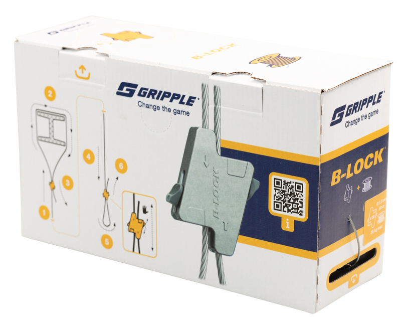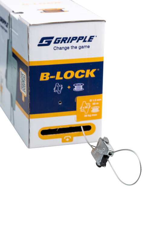 Ein B-Lock Paket mit 30 automatische Drahtklemmen und ein 1,5mm Stahlkabel von 50 Metern. Dieses praktische Paket ist ideal, um schnell und sicher eine Stahlkabelschlaufe ohne Werkzeug zu erstellen, die mit bis zu 35 kg belastet werden kann. Profi Gripper