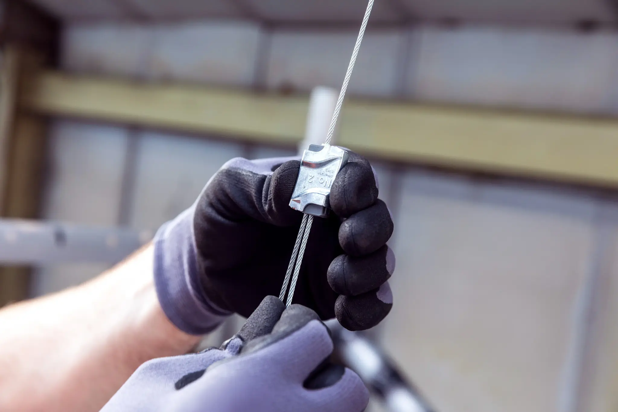 Automatische Drahtklemme von Gripple – die Hangpro 2. Zertifiziertes Aufhängen bis 55 kg. Sicherheitsfaktor 5:1.