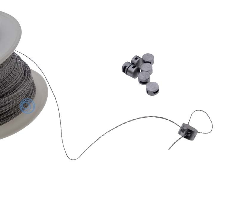 Spezielle Plombenzange zum Verpressen von Siegeln. Komplettset mit Zange, Quetschplomben und 90 Meter Siegeldraht. Verschlusssiegel.