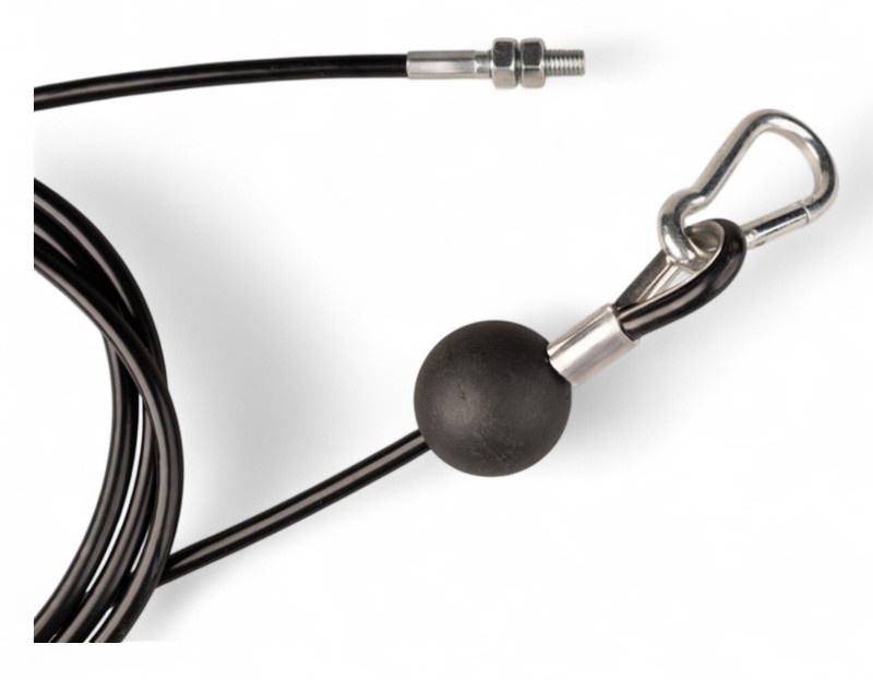 Fitness steel cable 4/6mm with M8 thread and carabiner with buffer stop - machine pressed.