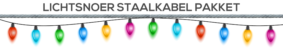 Toen een vriend ons erop wees dat er speciale pakketten bestaan om een lichtsnoer met staalkabel op te hangen hoefden we niet lang na te denken. Staalkabel is enorm sterk. Doordat het veel kracht kan weerstaan kun je een staalkabel mooi strak spannen. Perfect om een lichtsnoer aan op te hangen!