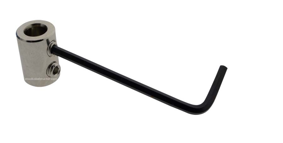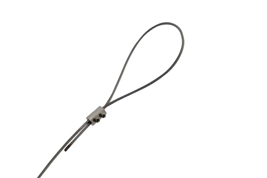 Staalkabelstoppen voor staalkabel 1mm en 1.5mm. Verchroomde uitvoering met dubbele inbusboutjes. Draadstop zonder speciaal gereedschap.