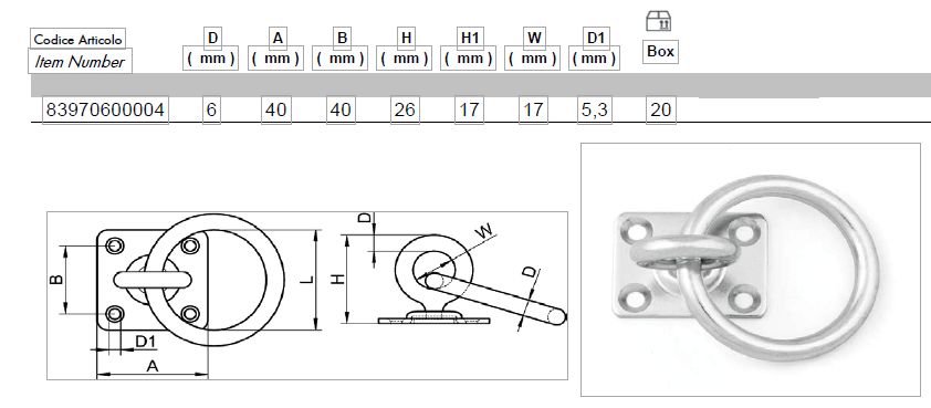 Deze oogplaat is ontworpen voor veelzijdig gebruik en kan betrouwbaar worden bevestigd met de vier robuuste bevestigingspunten. Schroeven of bouten zorgen voor een stevige en veilige montage. Het strakke design en de fijne afwerking van de oogplaat maken het niet alleen functioneel, maar ook esthetisch aantrekkelijk voor zowel binnen- als buitengebruik.