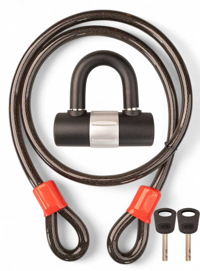 Deze oogkabel – ook wel “eye cable” genoemd – is voorzien van geperste lussen aan beide uiteinden, stevig afgewerkt met rubberen pershulzen. Samen met het meegeleverde beugelslot en twee sleutels biedt dit slot een duurzame én praktische oplossing voor wie veiligheid serieus neemt.