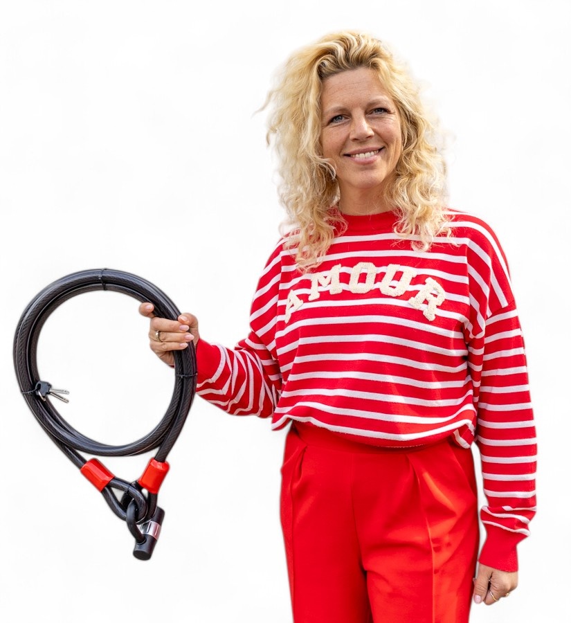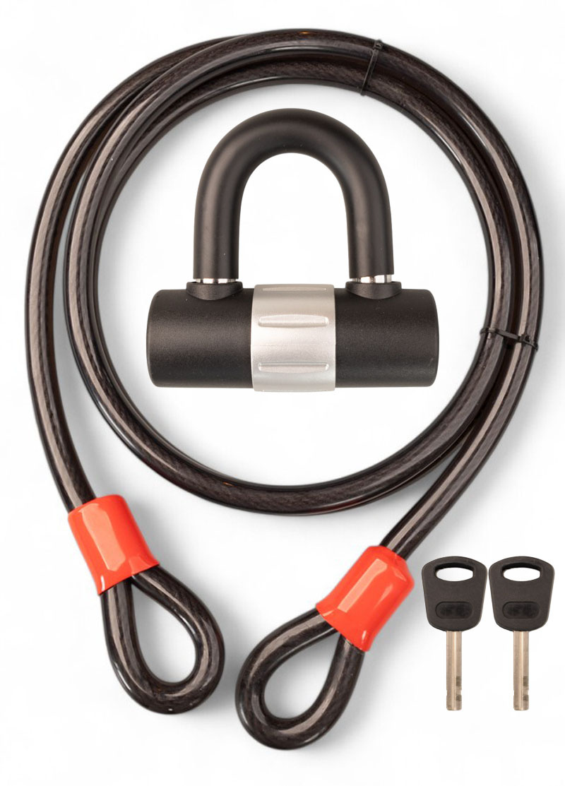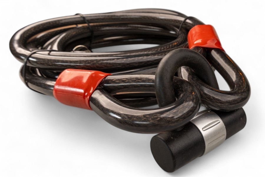 Deze oogkabel – ook wel “eye cable” genoemd – is voorzien van geperste lussen aan beide uiteinden, professioneel afgewerkt met rubberen pershulzen voor extra bescherming. De dikke PVC buitenmantel van 20 mm beschermt tegen roest, vocht en slijtage. Inclusief stevig beugelslot en 2 sleutels.