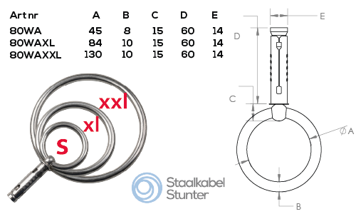 Gehard stalen Muuranker met groot oog voor het bevestigen van een kabel of ketting. Dit anker is vooral zeer geschikt voor oudere gevels omdat hierbij maar 1 gat van 14mm geboord hoeft te worden.