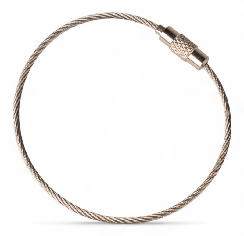 De staalkabel armband heet zo omdat zijn afmetingen lijken op die van een armband en omdat deze ook een sluiting heeft.