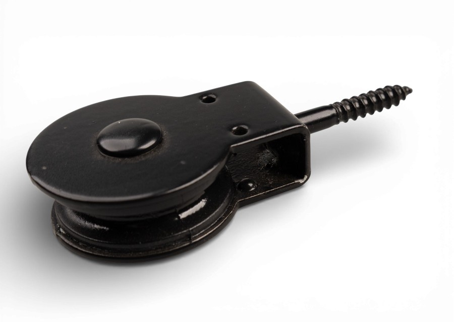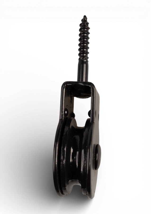 Mooie zwart uitgevoerde schroefkatrol. Zowel de kast als de polyamide schijf is in zwart uitgevoerd.