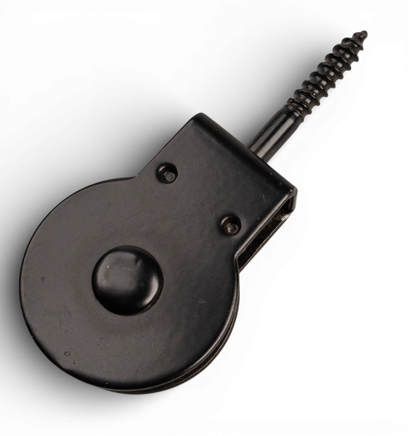 De schroef van deze katrol heeft een houtdraad, waarmee hij direct in hout of met een plug in beton geplaatst kan worden.