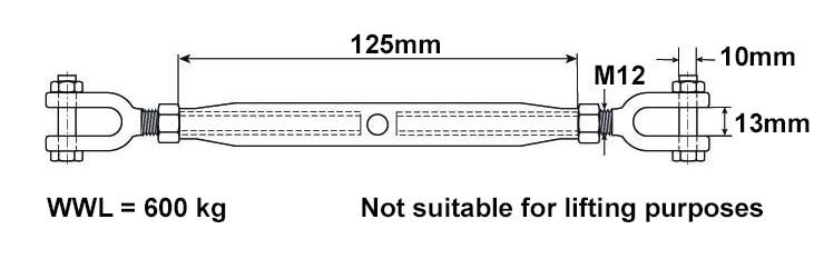 Deze spanschroef M12 is geschikt voor het krachtig spannen en afstellen van staalkabels bij zwaardere toepassingen. Dankzij de gaffel/gaffel aansluiting en de links- en rechtsdraaiende draad stel je eenvoudig de juiste spanning in zonder de kabel los te halen.