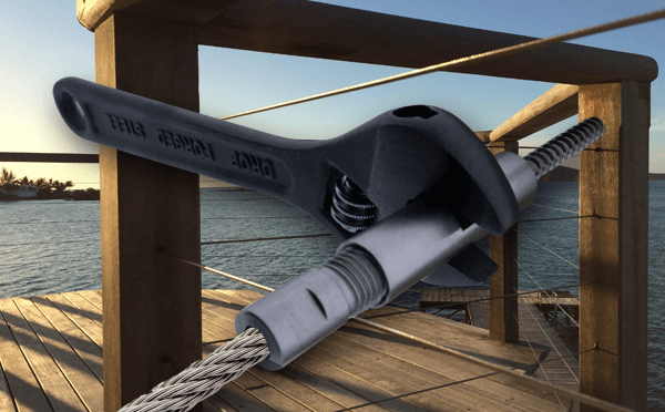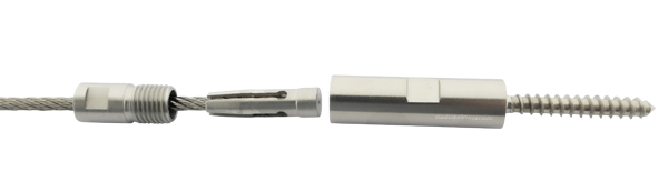 Roestvaststalen Houtschroef terminal met staalkabelopnamestuk. Links 5mm