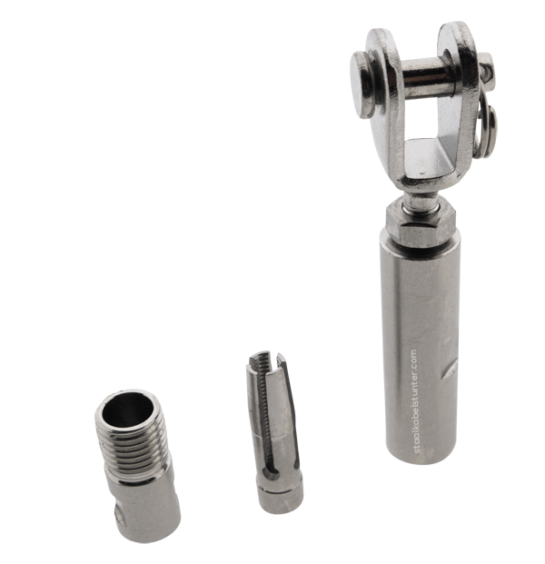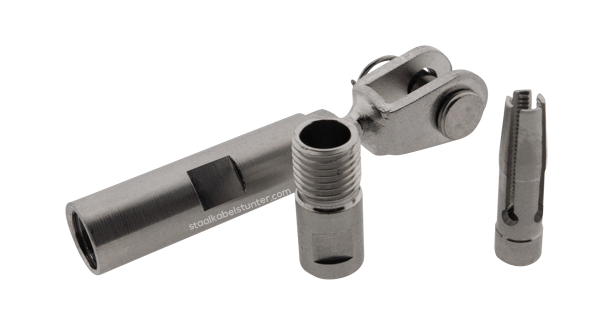 Roestvaststalen gaffel met staalkabelopnamestuk. Rechts 5mm